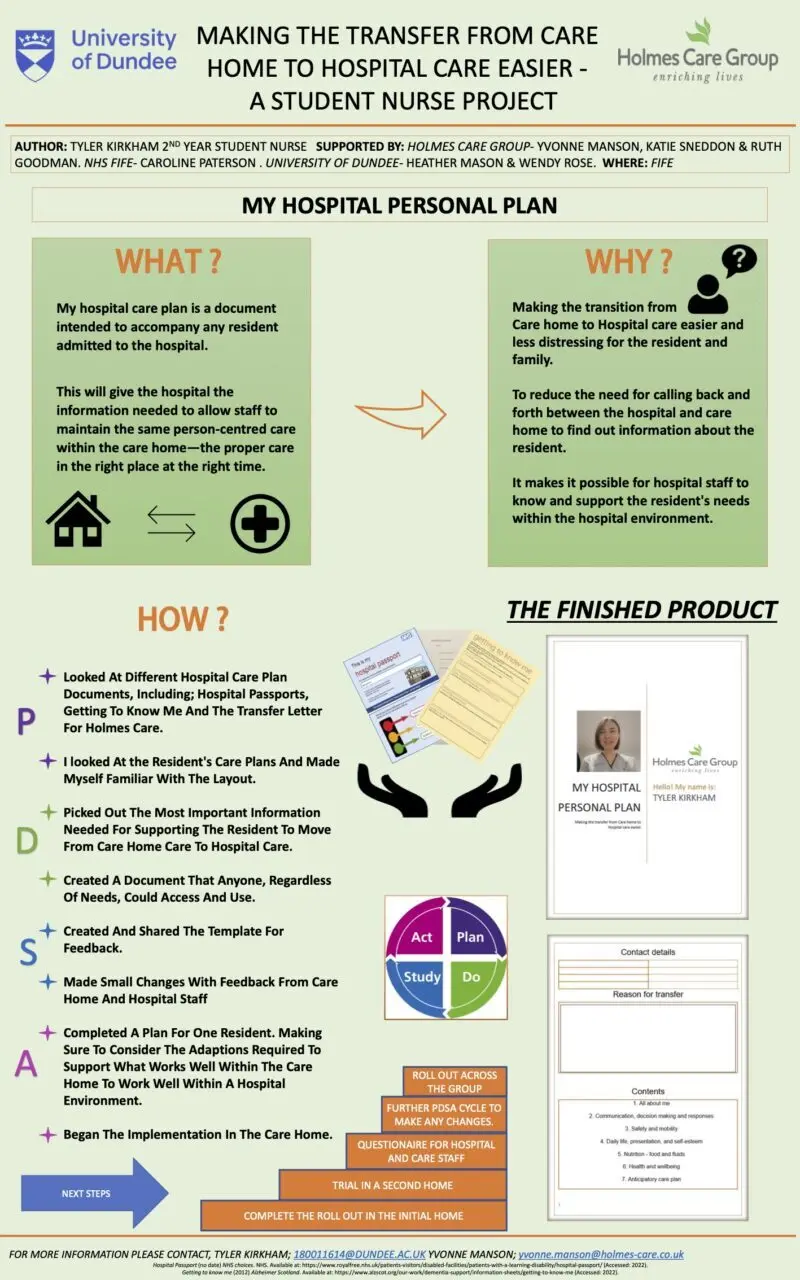 A student nurse in Scotland has developed a hospital passport for those living with dementia. The passport holds a detailed and holistic record of their health needs and care preferences, allowing hospital staff to give these patients high quality, personalised care when they go into hospital.
