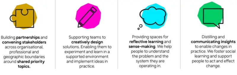 The Lab brings together multiple perspectives and then draws on the best available evidence, data and learning to generate a rounded understanding of the issue. We use that understanding to develop ideas, learn new skills and build momentum for change.