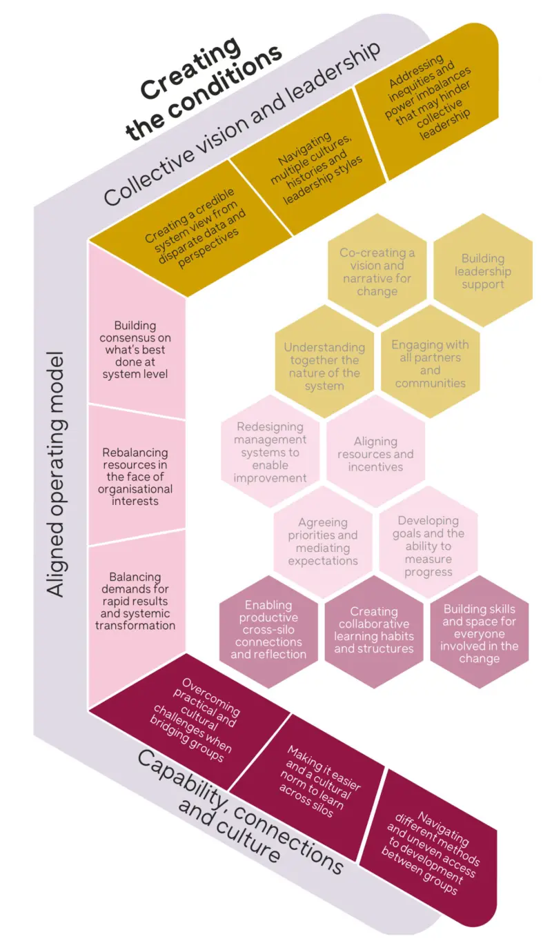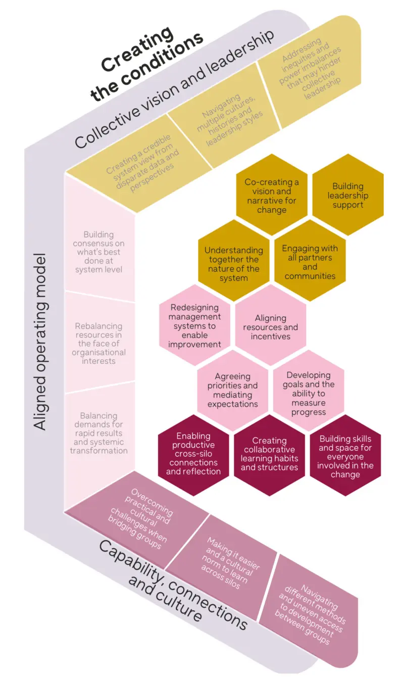 To achieve sustainable improvements across multiple organisations and hierarchies, leaders from across systems need to come together to plan and deliver work holistically.