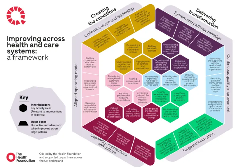 The framework can be used by those developing strategies to improve health and care across systems. It supports leaders to recognise and navigate the improvement landscape, and to holistically plan and deliver large-scale change.
